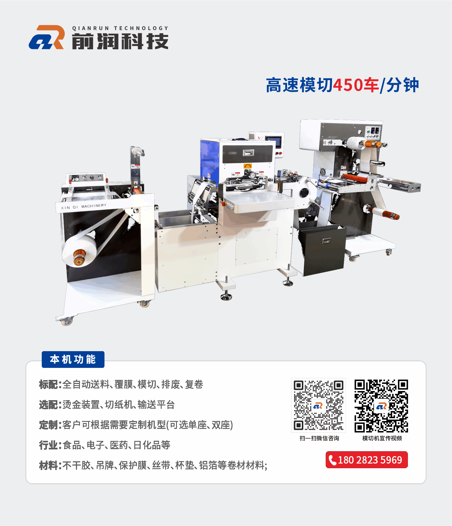 | 3、 | 采用斜背式設(shè)計、模切在機械動作以漸進的方式接觸,使模切壓力得以平均、模切可調(diào)整左右、前后、旋轉(zhuǎn)角度。 | |||